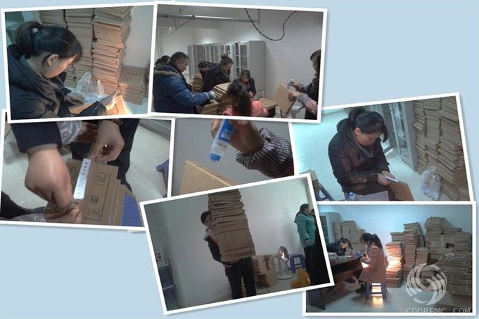 一丝不苟的本物业工作人员,一有空就一起折档案盒,贴档案盒的“背脊”
