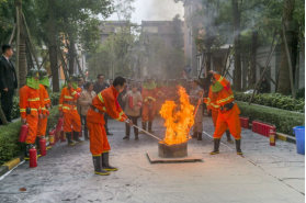 为贯彻落实《消防法》,将“预防为主、防消结合”的方针落到实处,促进各部门之间在突发事件时的相互配合和协调能力,提高物业企业及业主的防火意识,扩大防火宣传,增强和提高各物业企业的灭火作战和应急能力,温江区物业管理协会于2015年11月18日下午在彩叠园项目开展全区联合消防演习。我公司金色鱼凫项目负责人和安全主管观摩了此次消防演练,活动分三个阶段进行:首先此次活动的主办方温江区物业管理协会副会长进行讲话;然后温江区消防大队工作人员对消防器材的使用方法进行了讲解;最后在演练大楼观摩了在遇到火警、火灾的紧急情况下,如何科学、有序、高效的进行消防救援,做好相关应急处置工作。